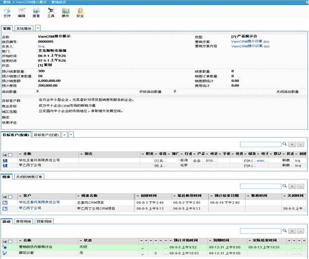 VamCRM營(yíng)銷(xiāo)自動(dòng)化提供了目標(biāo)明確、計(jì)劃清晰、結(jié)果可度量的營(yíng)銷(xiāo)戰(zhàn)役管理。實(shí)現(xiàn)以營(yíng)銷(xiāo)戰(zhàn)役為樞紐,市場(chǎng)細(xì)分,確定目標(biāo)市場(chǎng)和客戶(hù)群,制定客戶(hù)營(yíng)銷(xiāo)策略和宣傳方式,專(zhuān)注將目標(biāo)客戶(hù)轉(zhuǎn)化為實(shí)際的客戶(hù),能夠讓企業(yè)達(dá)到事半功倍的營(yíng)銷(xiāo)效果。營(yíng)銷(xiāo)戰(zhàn)役中集成豐富的市場(chǎng)活動(dòng)類(lèi)型,精細(xì)化管理營(yíng)銷(xiāo)活動(dòng),記錄所有在營(yíng)銷(xiāo)戰(zhàn)役過(guò)程中相關(guān)的歷史活動(dòng)、文檔、備忘錄等數(shù)據(jù),能夠?qū)撛诳蛻?hù)實(shí)現(xiàn)一對(duì)一營(yíng)銷(xiāo),可根據(jù)客戶(hù)的特定需求進(jìn)行差異化營(yíng)銷(xiāo)。
