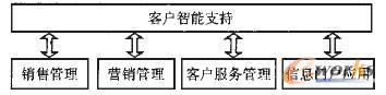 。5)客戶智能支持。客戶智能支持處于系統(tǒng)功能平臺的核心地位,若把圖2中的5個模塊比作是人體的不同功能器官,客戶智能支持就相當于人的“大腦”。雖然CRM應用系統(tǒng)中其他模塊也具各一定的數(shù)據(jù)統(tǒng)計分析能力,但它們的主要功能定位在業(yè)務操作和客戶協(xié)作層面,客戶智能支持模塊則是完整的、以輔助決策為設(shè)計目標的分析型應用,其基礎(chǔ)數(shù)據(jù)來自于各CRM業(yè)務流程運行產(chǎn)生的大量數(shù)據(jù)及企業(yè)其他應用系統(tǒng)數(shù)據(jù)。