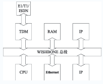 TDM控制模塊是VoIP網(wǎng)關系統(tǒng)設計中的重要部分,是連接來自PSTN(Public Switched TelephoneNetwork)串行的TDM數(shù)據(jù)格式和并行的Wishbone數(shù)據(jù)格式的橋梁,實現(xiàn)兩邊數(shù)據(jù)跨時鐘域無丟失的轉換。為滿足高速數(shù)據(jù)轉換的要求,采用了Wishbone總線,將多個IP核集成為VoIP網(wǎng)關系統(tǒng)!