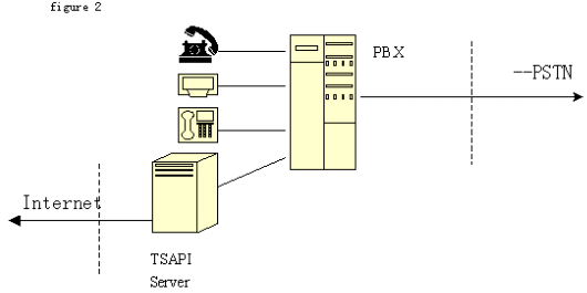 2、TSAPI技術(shù)標(biāo)準(zhǔn):由Novell公司開發(fā)。它將程控交換機或中央電話系統(tǒng)與Netware網(wǎng)絡(luò)集成在一起?梢詫崿F(xiàn)呼叫轉(zhuǎn)移,交互式語音(IVR)和自動呼叫分配(ACD)等功能。支持包括Windows各種版本、OS/2和Unix等目前主要操作系統(tǒng)。不同于TAPI ,TSAPI在計算機和桌面之間建立一個邏輯的連接,通過這些連接在任一端的TSAPI應(yīng)用就可以完成呼叫控制。由于TSAPI主要為Netware網(wǎng)操作系統(tǒng)增加電話服務(wù),不在每個電話和PC之間建立直接的連接,而是由一個電話服務(wù)器Netware可加載模塊(NLM)、一個電話服務(wù)器API(TSAPI)、一個電話服務(wù)器庫和一個電話客戶庫組組成在服務(wù)器電話系統(tǒng)間建立的連接,因此這個連接也稱為PBX-To-Server連接。電話服務(wù)器 NLM是負(fù)責(zé) PBX和 Netware服務(wù)器間傳送信息的。電話服務(wù)器 API是為運行于服務(wù)器上的應(yīng)用提供電話服務(wù)器API。三方連接在客戶--服務(wù)器組網(wǎng)中比單方連接有更大的靈活性。網(wǎng)上的每個用戶都可迅速地通過現(xiàn)有的LAN基礎(chǔ)結(jié)構(gòu)撥入PBX。對其他服務(wù)的接入,如主機或終端仿真、傳真、E-mail等,都可以通過CTI接口獲得,只要這些業(yè)務(wù)已經(jīng)存在于網(wǎng)上。結(jié)構(gòu)如圖: