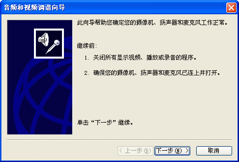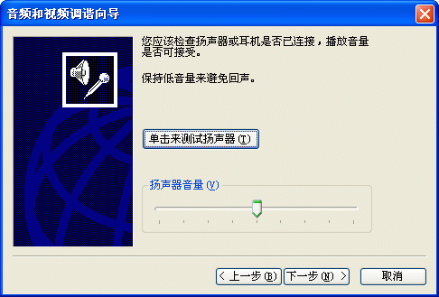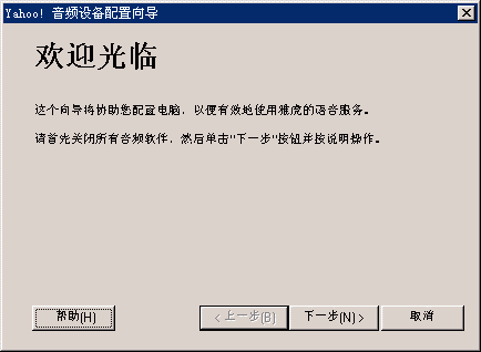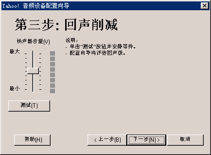 選擇幫助->音頻設(shè)備配置向?qū)?圖2),會彈出“音頻設(shè)備配置向?qū)А贝翱?圖3),這個向?qū)䦷椭銓P(yáng)聲器、麥克風(fēng)、回音、網(wǎng)絡(luò)連接等項目進(jìn)行標(biāo)準(zhǔn)的測試和設(shè)置。