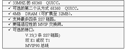 TX3000卡的功能大致和TX2000卡相同,但它比TX2000的性能2.5至5倍。TX3000卡上有一個66MHZ的68060協(xié)處理器。TX3000卡為SS7應(yīng)用配置1至4個QUICC通信控制器,最多16條信令鏈路,提供一個三口V.35,擁有雙T1或雙E1接口。(主板上標(biāo)準(zhǔn)配置一個QUICC,支持四條SS7鏈路,當(dāng)CT總線和串行接口都要使用,或者處理的鏈路超過4條時,可先配置有三個QUICC的背板,四個QUICC可支持16條SS7鏈路)。