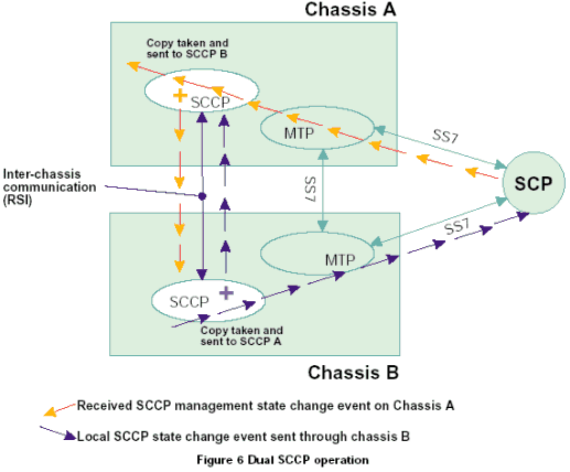 SCCP通過支持可尋址的子系統(tǒng)概念提高了消息傳遞部分(MTP)的路由能力。所有已知的本地和遠(yuǎn)端子系統(tǒng)的路由可用性(允許狀態(tài)或禁止?fàn)顟B(tài))在SCCP層中進(jìn)行管理。在一個(gè)由N個(gè)SCCP層(或多個(gè)SCCP的實(shí)例)組成作為同一節(jié)點(diǎn)編碼的系統(tǒng)中,用戶應(yīng)用程序和遠(yuǎn)端節(jié)點(diǎn)需要能夠通過任何SCCP實(shí)例交換SCCP數(shù)據(jù)消息,并且希望每個(gè)SCCP中的路由表都是相同的。為了達(dá)到這個(gè)目的,需要使用廣播機(jī)制增強(qiáng)SCCP層,這種機(jī)制將本地或遠(yuǎn)端的路由狀態(tài)的任何改變發(fā)送到廣播任務(wù)。廣播任務(wù)負(fù)責(zé)將路由變化傳送到N-1(其他)SCCP實(shí)例。在雙系統(tǒng)中,廣播任務(wù)只是另一個(gè)SCCP層,這兩層使用基于消息的API進(jìn)行通信。在一個(gè)雙機(jī)箱/子機(jī)架環(huán)境中,這些消息可以由RSI和TCP/IP組合來傳遞。