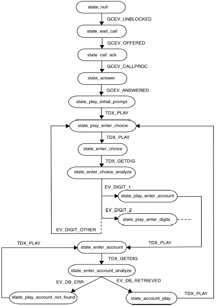 IVR參考程序(SimpleIvr)為想用R4和包括軟件開發(fā)包(SDK)的Global Call APIs 建立應(yīng)用程序的Dialogic用戶提供了演示代碼。該應(yīng)用程序用C++開發(fā),使用面向?qū)ο蟮姆椒ㄔ试S增加新的組件及對(duì)已有組件的重用。SimpleIvr應(yīng)用程序設(shè)計(jì)為單線程、異步,符合必要的性能需求,并使用了一些特殊的技術(shù),比如線程池,來處理長(zhǎng)時(shí)間的運(yùn)轉(zhuǎn)。